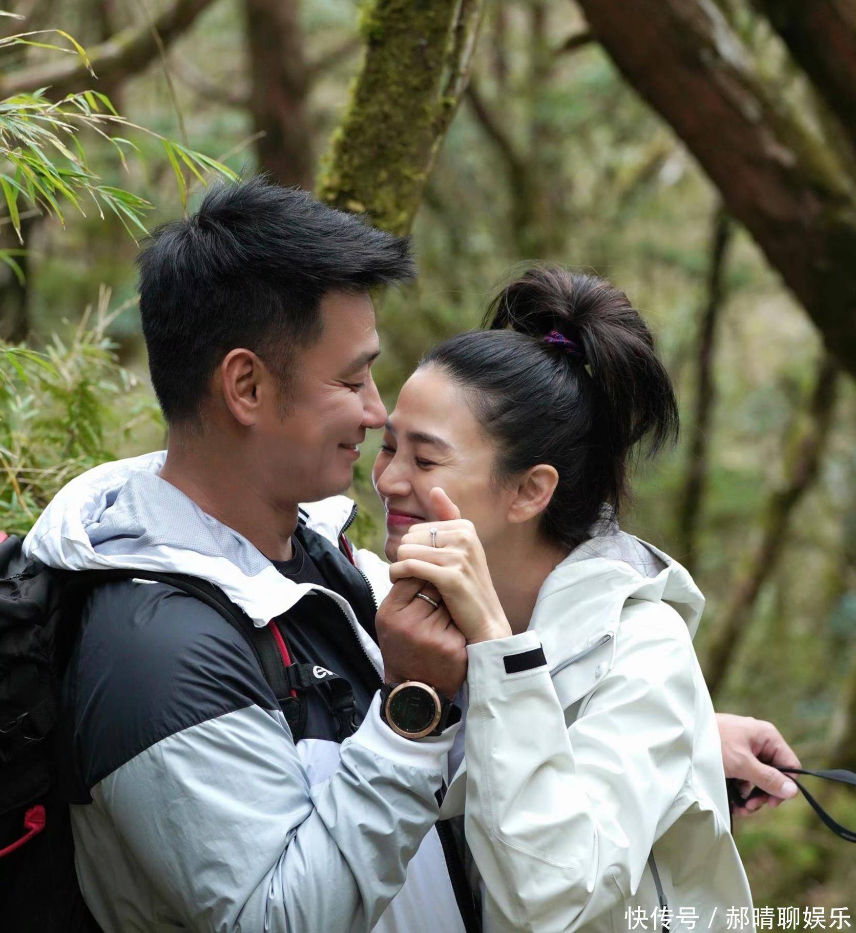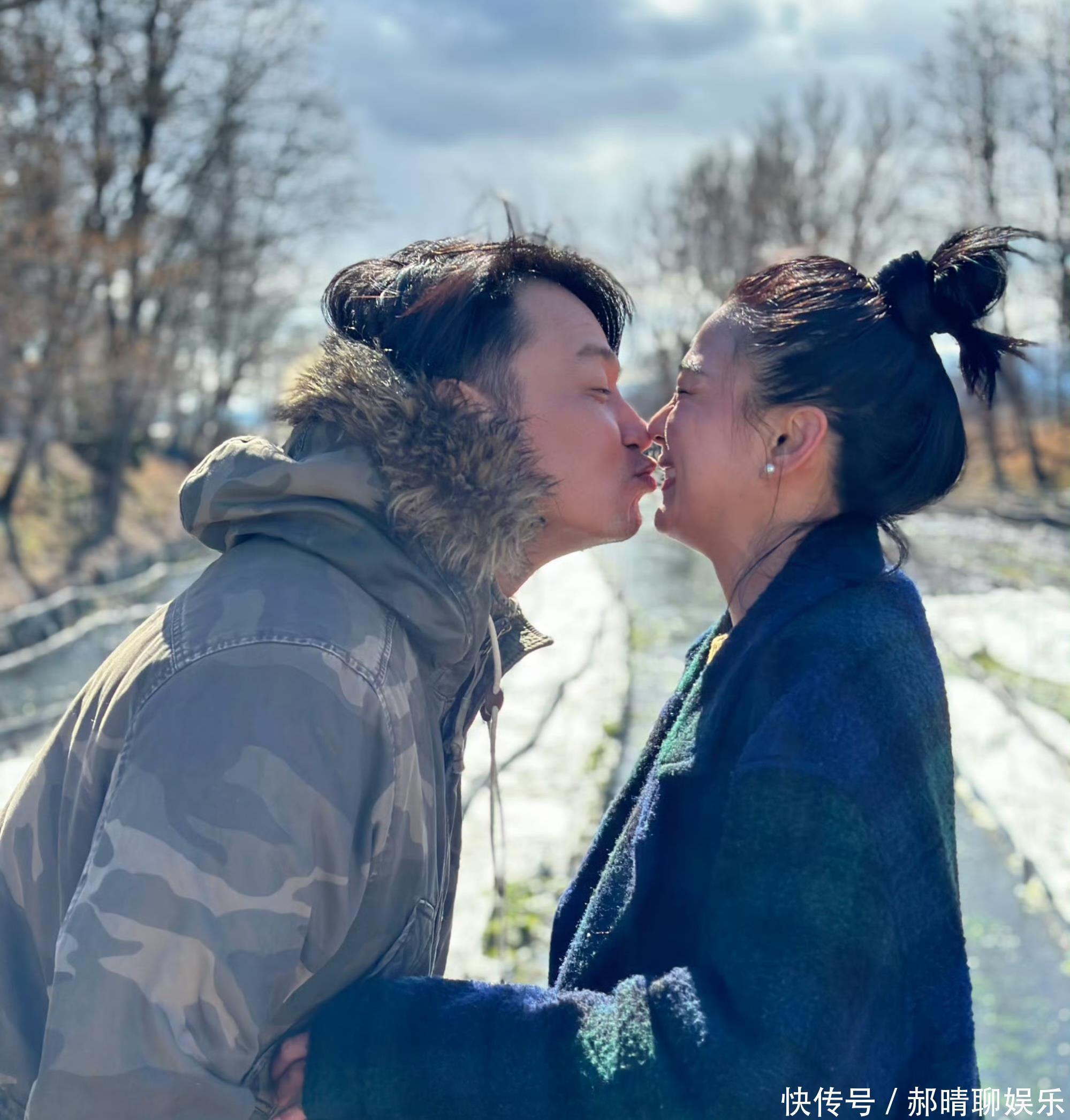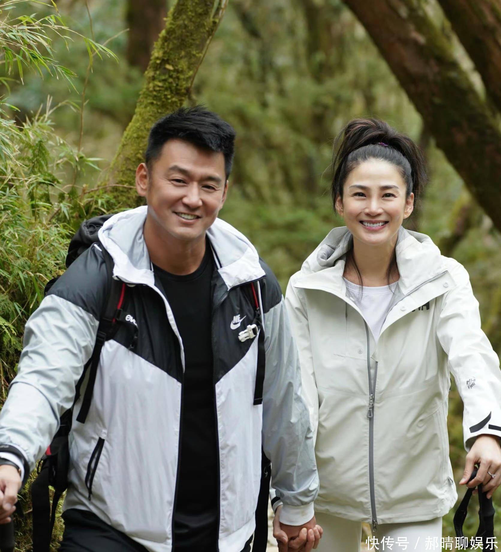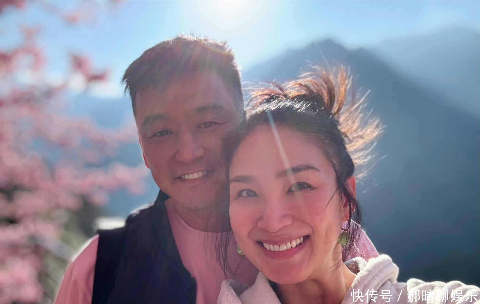 她随意将头发盘起,身穿一件灰色戴帽子卫衣,脸色红润,笑容如靥,看起来还是那么漂亮。夫妻俩同框,真是般配。不过,虽然两人是同年出生,但她看起来比老公显年轻,有种隔了一个辈分的既视感。